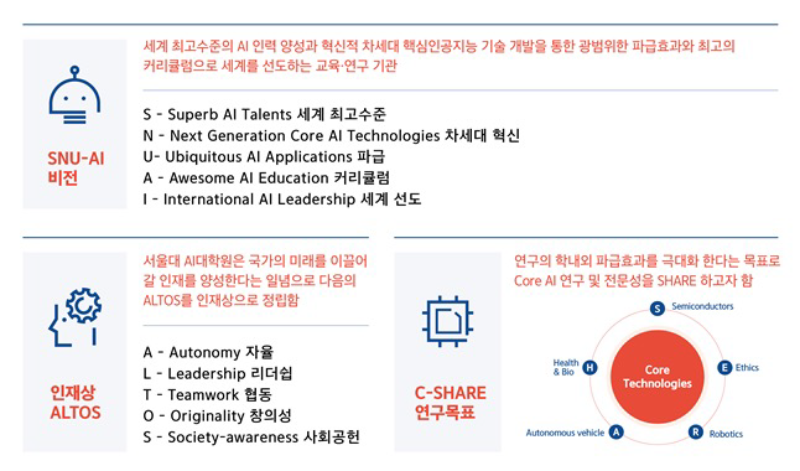 ·다양한 응용(Ubiquitous AI Applications), 체계적인 교육(Awesome AI Education), 국제 리더십(International AI Leadership)을 지향
